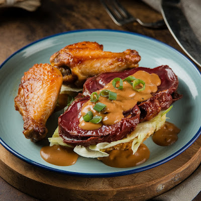 This dish offers a perfect balance between the tender and rich flavors of the chicken wings and liver, enhanced by the aromatic herbs and creamy sauce. It is a luxurious meal that combines traditional flavors with classic French techniques.